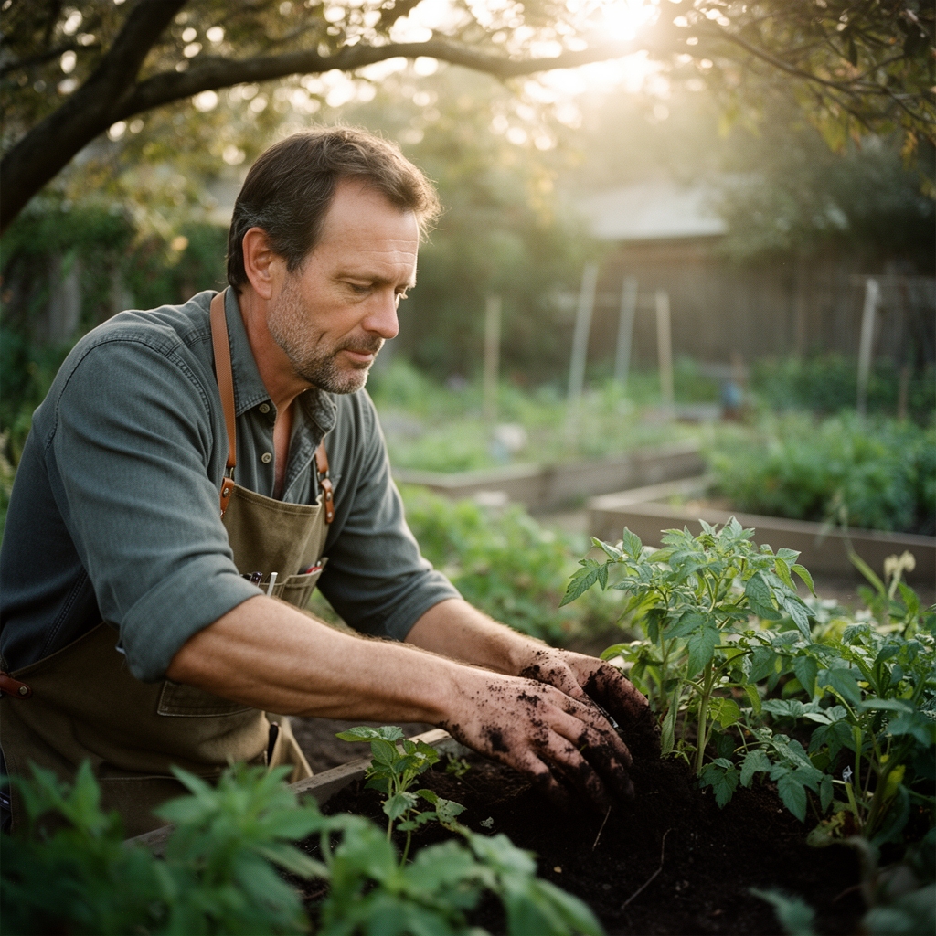 Side-dress heavy feeders (tomatoes, squash, corn) every 3-4 weeks with balanced organic fertilizer at 2 tablespoons per plant, scratched into top 2 inches of soil. Monitor leaf color; dark green verging on blue-green indicates excess nitrogen, promoting vegetative growth at the expense of fruiting.